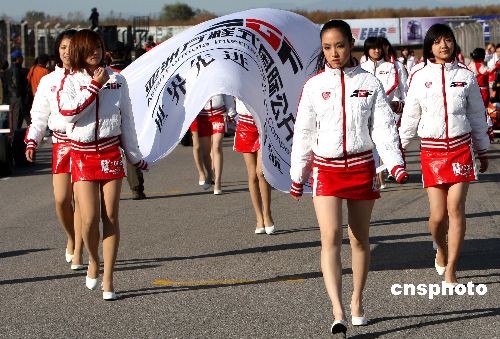 AGF亞洲方程式國際公開賽10月26日在北京京港賽車場舉行,來自中國內地和香港的20名頂級方程式車手參加本站精彩紛呈的較量,眾多美女前來助陣。中新社發 趙振清 攝