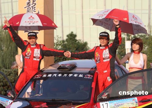 2008年國際汽聯(lián)亞太拉力錦標(biāo)賽(APRC) 暨“捷馬京橋杯”中國(龍游)拉力賽(CRC)11月9日在浙江省龍游縣結(jié)束。經(jīng)過三天的激烈角逐,貴州百靈車隊劉曹冬與澳大利亞領(lǐng)航員麥克盧寧密切配合奪得中國(龍游)拉力賽(CRC)N組冠軍。中新社發(fā) 趙振清 攝