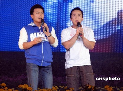 11月17日晚,在“客家祖地”福建龍巖舉行的第五屆中國龍巖投資項目洽談會文藝晚會上,福建龍巖籍奧運冠軍張湘祥、石智勇同臺為海內(nèi)外鄉(xiāng)親深情演繹一曲《朋友》。中新社發(fā) 張彩林 攝
