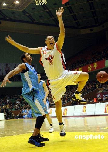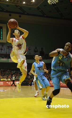 2008年11月19日,2008-2009CBA聯(lián)賽常規(guī)賽第2輪比賽在山東濟南舉行,主場作戰(zhàn)的山東黃金男籃以116-89戰(zhàn)勝北京金隅男籃。中新社發(fā) 張侃 攝
