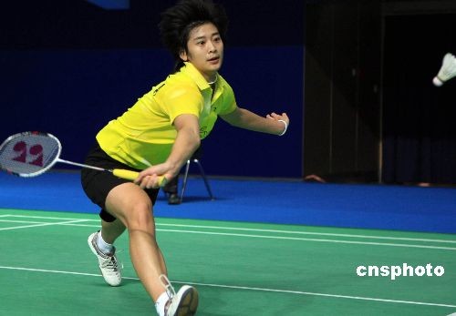 11月21日,在上海進行的2008年中國羽毛球公開賽女子單打1/4決賽中,中國小將王琳以2比0輕取馬來西亞選手黃佩嫻,率先晉級四強。中新社發 湯彥俊 攝