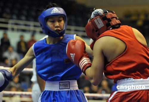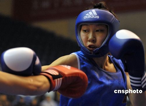 11月22日下午,2008世界女子拳擊錦標賽在寧波體育中心雅戈爾體育館拉開戰幕,中國隊的李思源在與美國的比賽中,戰勝對手,取得第一場勝利。當天共進行了26場預賽。中新社發 李巖宏 攝