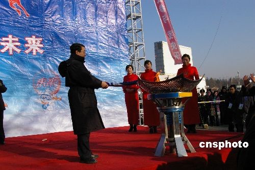 12月23日上午,哈爾濱第24屆大學生冬季運動會火炬在黑龍江省雪城牡丹江的傳遞結束。本站為大冬火炬傳遞第三站,共有39名火炬手進行傳遞,全程3.3公里。中新社發 李樹明 攝