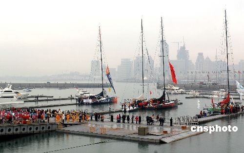 2月14日,2008-2009年沃爾沃環(huán)球帆船賽青島站舉行起航儀式。據(jù)悉,為了讓民眾充分領(lǐng)略沃爾沃環(huán)球帆船賽的魅力,青島站組委會向公眾免費(fèi)開放奧帆中心,吸引了大量游客。截至當(dāng)日,青島奧帆中心共接待海內(nèi)外觀眾四十余萬人次。沃爾沃環(huán)球帆船賽是繼奧帆賽、殘奧帆賽后,青島承辦的又一項(xiàng)全球頂級專業(yè)帆船賽事,也是中國首次在冬季寒冷氣候下在北方水域承辦的帆船賽事。中新社發(fā) 衛(wèi)卿 攝