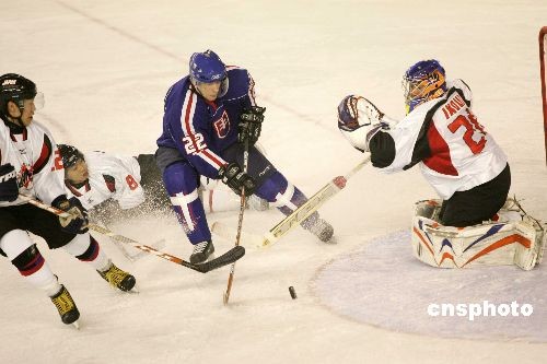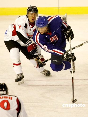2月19日晚,第24屆世界大學生冬季運動會男子冰球比賽在哈爾濱體育學院冰球館繼續進行,斯洛伐克最終以4比1完勝日本。中新社發 富田 攝