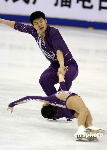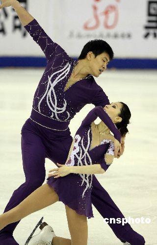 在第24屆世界大學(xué)生冬季運(yùn)動(dòng)會(huì)花樣滑冰雙人滑比賽中,張丹、張昊以195.32的總成績(jī)奪得冠軍,取得三連冠。中新社發(fā) 王韶驊 攝