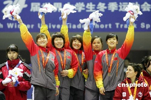 2月23日,第24屆大冬會短道速滑比賽全部結束,在女子3000米接力比賽的爭奪中,中國隊憑借著強大的實力,以4分07秒119順利奪冠,此前已經奪取500米和1000米金牌的劉秋宏,順利成為三冠王。中新社發 富田 攝
