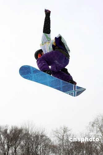 2月24日中午,在黑龍江哈爾濱舉行的大冬會比賽上,我國選手曾小燁、史萬成和徐德超在男子單板滑雪U池的預(yù)賽中順利過關(guān),進(jìn)入了決賽。中新社發(fā) 王韶驊 攝