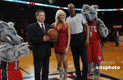 當(dāng)?shù)貢r(shí)間3月8日晚,美國大紐約地區(qū)“2009中華之夜”晚會(huì)在NBA新澤西網(wǎng)隊(duì)主場舉行,在NBA賽場吹出一陣“中國風(fēng)”,眾多美國球迷在觀看球賽之余,也飽覽了一場中華文化盛宴。圖為中國駐紐約總領(lǐng)事彭克玉在演出現(xiàn)場。中新社發(fā) 魏晞 攝