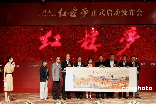 10月30日,2007年新版電視劇《紅樓夢》制片方在溫都水城國際酒店水上報告廳首次舉行官方發布會,宣告新版《紅樓夢》正式啟動。同時,李少紅導演宣布正式接手新版電視劇《紅樓夢》導演工作。據了解,新版電視劇《紅樓夢》預計2008年初開機,2008年8月8日關機;預計2009年年初播出,制作標準為50集,制作費用約100萬一集,總投資5000萬人民幣。中新社發 袁方 攝