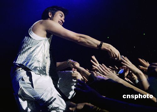 當?shù)貢r間十二月二十三日晚,音樂才子王力宏在舊金山舉辦《蓋世英雄》演唱會,與歌迷同慶圣誕佳節(jié)。中新社發(fā) 陳鋼 攝
