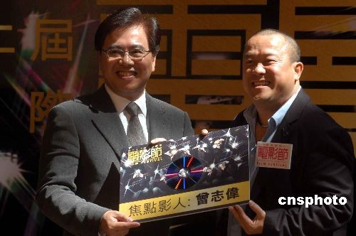 二月二十一日,香港國際電影節(jié)協(xié)會(huì)主席王英偉(左)在記者會(huì)上向曾志偉頒獎(jiǎng)。由香港國際電影節(jié)協(xié)會(huì)主辦的第三十二屆香港國際電影節(jié),將于三月十七日至四月六日舉行。中新社發(fā) 譚達(dá)明 攝