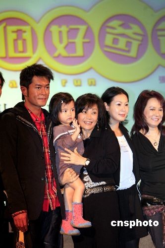 香港國際影視展參展影片《一個好爸爸》三月二十日舉行新聞發布會,該片由成龍監制,張艾嘉導演(左三)、香港演員古天樂(左一)、臺灣演員劉若英(右二)主演。影片將于四月十日全球公映。圖為劇中主要演員出席發布會。中新社發 王麗南 攝