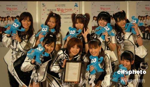 4月29日,上海世博會(huì)組委會(huì)邀請(qǐng)日本人氣組合早安少女參加“放歌世博”上海演唱會(huì)的新聞發(fā)布會(huì)在東京中野Sun Plaza舉行。去年首次吸收兩位中國籍成員“純純”和“琳琳”的早安少女組合,目前致力于亞洲市場,已在日本、韓國以及臺(tái)灣地區(qū)成功舉行大型演唱會(huì)。2008年6月28日在上海舉行的早安少女組合“放歌世博”上海演唱會(huì),將是該組合第一次來到中國大陸地區(qū)舉辦演唱會(huì),她們也是上海世博會(huì)“放歌世博”大型演唱活動(dòng)邀請(qǐng)的第一個(gè)日本藝人(組合)。圖為早安少女組合開心地與獲贈(zèng)的上海世博會(huì)吉祥物“海寶”合影。前排右一、右二分別為中國籍成員李純、錢琳。中新社發(fā) 關(guān)妍 攝