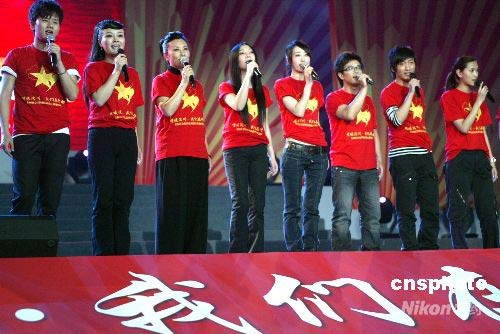 5月25日晚,由13家國(guó)家一級(jí)社會(huì)組織共同主辦的“情暖汶川·我們?cè)谛袆?dòng)——全國(guó)社會(huì)組織抗震救災(zāi)募捐義演”在北京首都體育館舉行,來自社會(huì)各界的1萬余名觀眾參加了此次募捐活動(dòng)。現(xiàn)場(chǎng)籌得款物將通過中華慈善總會(huì)全部捐給地震災(zāi)區(qū)。中新社發(fā) 趙雋 攝