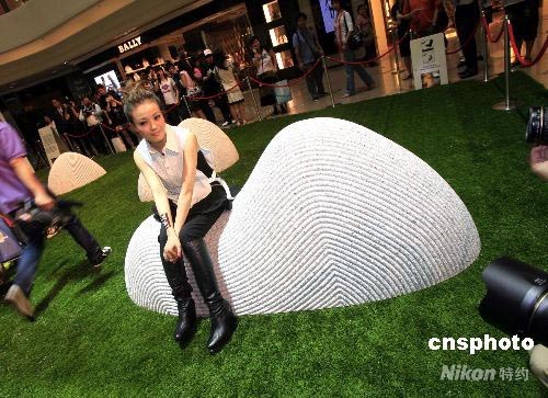 五月二十七日,臺(tái)灣藝術(shù)家洪東祿、黃致陽(yáng)藝術(shù)展在香港時(shí)代廣場(chǎng)舉行,香港歌星容祖兒被邀出席并在藝術(shù)家黃致陽(yáng)的“座千峰”雕塑前接受采訪。容祖兒介紹,明日就將與劉德華等數(shù)名藝人赴四川探訪地震災(zāi)民,給他們送去心靈的慰籍書藉。中新社發(fā) 王麗南 攝