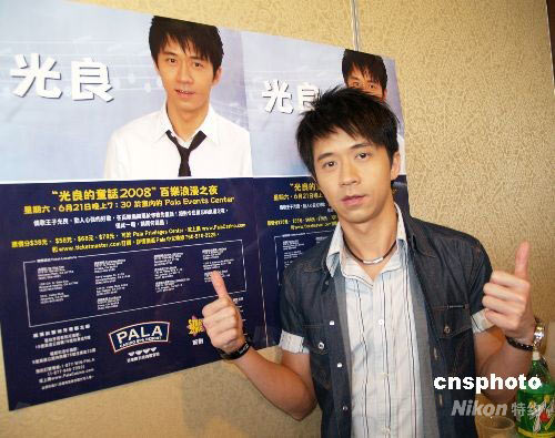 6月19日,馬來西亞“情歌王子”光良飛抵美國洛杉磯,舉辦《光良的童話2008百樂浪漫之夜》,讓洛杉磯廣大華人歌迷有機會與光良近距離接觸,受到熱烈歡迎。中新社發 盧威 攝