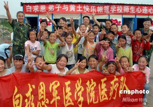 解放軍石家莊白求恩軍醫(yī)學(xué)院派出的心理支援隊(duì),近日來(lái)到四川省安縣黃土鎮(zhèn)“快樂(lè)帳篷學(xué)校”,向孩子履行心理支援義務(wù),收到良好效果。中新社發(fā) 尹威華 攝