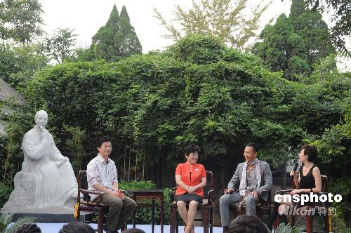9月16日,《畫皮》主要演職人員周迅、陳坤、孫儷、戚玉武來到聊齋故里山東省淄博市淄川區蒲家莊,舉行《畫皮》全球首映式。《畫皮》主題曲《畫心》的演唱者張靚穎也在現場傾情演繹了這一蕩氣回腸的歌曲。下午4點,著名主持人崔永元和《電影傳奇》節目還專門在蒲松齡故居進行了專訪,蒲學研究專家馬瑞芳現場進行點評。淄博是歷史名著《聊齋志異》作者蒲松齡的故鄉,《畫皮》是其代表作。經過長達一年的籌備與拍攝,東方新魔幻巨制《畫皮》將于9月26日與全國觀眾見面。中新社發 閆盛霆 攝
