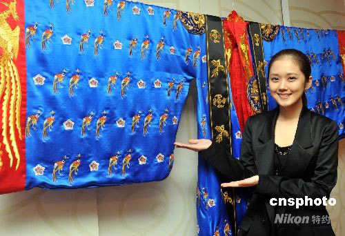 十月八日,韓國影視紅星張娜拉在香港出席韓國觀光公社“Korea Plaza”誕生一周年記者會(huì),為韓國觀光公社推介韓國秋冬玩樂好去處,并參觀社內(nèi)展出的一件仿朝鮮皇后的服裝。中新社發(fā) 鄧慶樂 攝