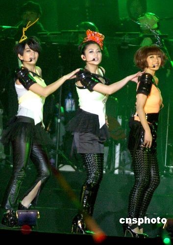 2008年10月31日晚,S.H.E、飛輪海全國(guó)演唱會(huì)濟(jì)南站在山東濟(jì)南舉行。當(dāng)日正值S.H.E成員Selina生日,S.H.E和飛輪海全體成員以及全場(chǎng)歌迷共同為Selina慶祝。中新社發(fā) 張侃 攝