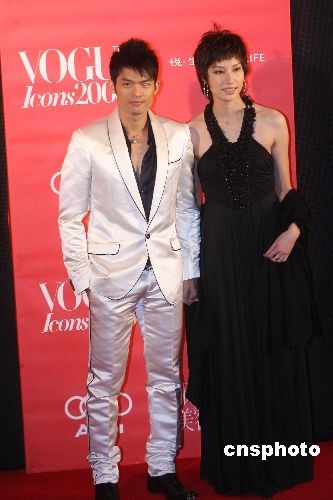 V0GUE2008年度盛典12月6日夜在北京銀泰中心舉行。羽壇“神雕俠侶”林丹、謝杏芳情侶檔高調亮相十指相扣走上紅毯秀甜蜜,林丹穿著休閑西裝搭配三顆扣子解開的襯衣,謝杏芳也一改賽場上的樸實,一身黑色露肩晚禮服,手拿精致小香包,女人味十足。林丹一路都非常體貼的輕挽著女友,兩人果真是金童玉女般的完美組合。中新社發 楊可佳 攝