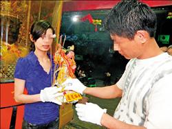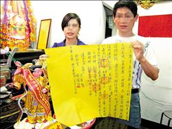 中新網8月11日電 你相信人神戀嗎?在嘉義有一名情路坎坷的男子,無意間幫朋友酬神,他說后來感應到神明闖入夢中,與其相戀,還說要以身相許,他果真由父母作主,把神明給娶回家供奉。這場另類婚禮還特地找來年輕女子代替女主角,雙方象征性互戴戒指完婚。