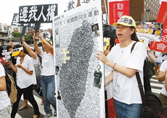 中新網8月12日電 “日本政府,道歉賠償!”日本首相菅直人前天向韓國道歉“曾經殖民支配”,臺灣婦女救援基金會、臺灣戰俘營紀念協會等民間團體,11日赴“日本交流協會”前抗議并要求完成“歷史記憶拼圖”,不過交流協會代表僅接下抗議信,不愿完成拼圖。