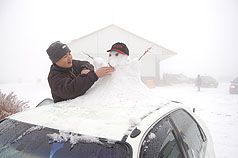合歡山昨日傍晚6時許開始飄雪花,雖然雪勢不大,但整晚陸陸續續的飄,再度讓合歡山公路自昆陽以上至松雪樓沿線出現積雪。