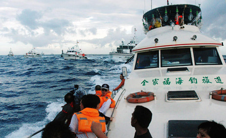 馬英九當局的強硬態(tài)度,讓保釣人士格外興奮。黃錫麟等人再次出海保釣,也沒有遭遇任何阻攔。臺灣保釣行動聯(lián)盟12名成員及30名隨行記者,登上“全家福”號海釣船,前往釣魚島宣示“主權(quán)”。一路上還有臺灣“海巡署”的軍艦保護。
