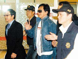 成龍一跨進入境大廳,就被抗議群眾大喊“成龍滾蛋”,不過也隨即有支持群眾高呼“歡迎成龍”,兩邊彷佛較勁一般。而帶著大墨鏡的成龍,在保全與警方重重圍住保護下,始終面帶笑容,超過十次提醒采訪記者要小心機器注意安全,對于媒體詢問心情,成龍表示到臺灣很開心,已經跟朋友約好要碰面,接著就上車呼嘯而去。