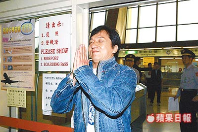 忙完上述活動后,成龍昨晚離臺。他一到機場引起騷動,航警、旅客搶著與他合照,親和力十足的他全部應允,滿足影迷需求才搭機離臺。