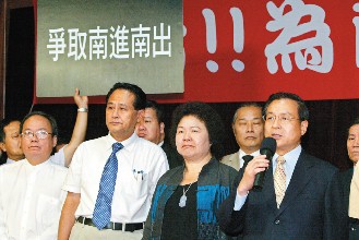 中新網6月27日電 據臺灣《聯合晚報》報道,高雄市長陳菊、臺南市長許添財、屏東縣長曹啟鴻、高雄縣副縣長葉南明等臺灣南部4位綠營執政縣市長今天齊聚高雄,對7月4日兩岸周末包機只安排高雄小港機場一班包機,7月18日更沒有包機表示抗議,呼吁馬英九對臺灣南部的“不公平政策”要“懸崖勒馬”。