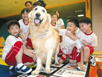 據臺灣媒體報道,“小胖”是一只3歲的黃金獵犬,初到幼兒園“兼課”,隨即贏得小朋友的喜愛。幼兒的狗“老師”是該幼兒園園長所催生。最近,她首創狗課程,雖然課程安排只有半小時,但她為除去家長的疑慮,特別與狗學校接觸,遴選具穩定、服從性高的“小胖”到!凹嬲n”。