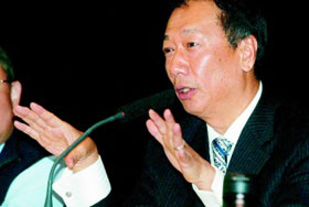 而對于股價(jià)一度跌到52.5元,郭臺銘表示,過去外資占6 成,最高達(dá)63%,去年遭逢金融危機(jī),救自己的基金,這足底長期持有者,如保險(xiǎn)公司、退休、管理者一定要賣股救公司。但換一個(gè)角度,不是壞事,因?yàn)楫?dāng)好時(shí),會回來;因?yàn)橛须y時(shí),要賣可賣,不像一些小公司,賣都賣不掉。郭臺銘表示,近日許多基金經(jīng)理人告訴我,過去一年以來,可賣得掉,若未來回來,鴻海是必選股票之一。