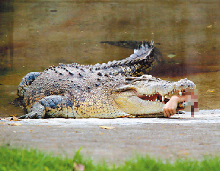 壽山動物園4月傳鱷魚咬人意外,動物園組長張博宇為鱷魚治病遭咬斷左前臂。搶回斷臂后接合后,張博宇持續復健中,至于闖禍的鱷魚正在冬眠。記者劉學圣/攝影