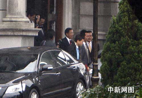 陳水扁與馬英九兩人選后的首度會面4月1日上午在臺北賓館舉行。會談結束后,陳水扁親自到門口送馬英九搭車離去。(杜洋/攝)
