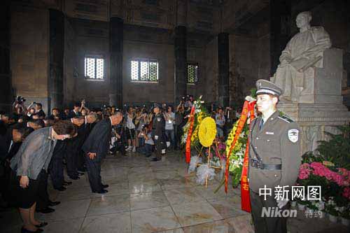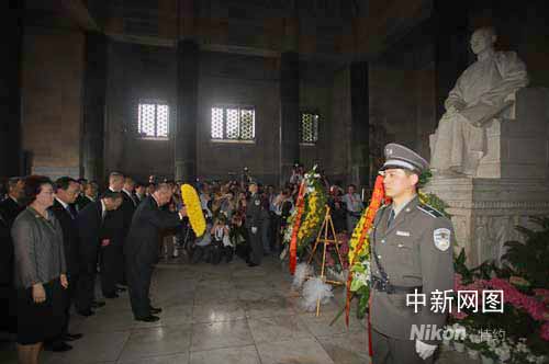 中新網(wǎng)5月27日電 中國國民黨主席吳伯雄率領(lǐng)中國國民黨訪問團今天(27日)上午8時20分左右抵達南京中山陵,隨后舉行拜謁儀式,向?qū)O中山先生坐像敬獻花圈、宣讀祭文、行鞠躬禮。