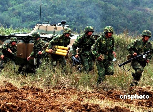 圖為諸兵種聯(lián)合協(xié)同作戰(zhàn)。中新社發(fā) 宋吉河 攝