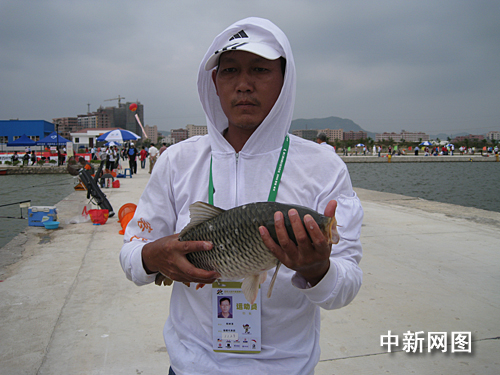 中新網泉州10月26日電 在今天上午舉行的第六屆農運會手桿釣混合魚單尾重量賽中,福建選手陳樹清釣到一條將近七斤重的大魚。