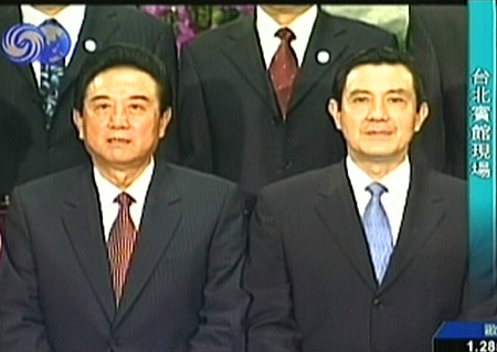 中新網臺北11月6日電 馬英九6日上午在臺北賓館會見海協會會長陳云林一行。