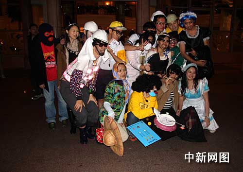 一月一日凌晨,參加化妝舞會迎新年的臺北市青年。中新社記者 陳立宇/攝
