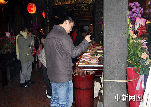 到寺廟去虔誠拜拜,祈求來年平安是成千上萬臺(tái)胞春節(jié)必做的功課。 中新網(wǎng)記者 陳立宇 攝