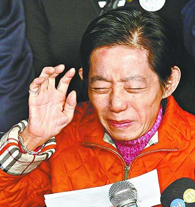 2月10日,臺北地方法院再次傳喚陳水扁之妻吳淑珍到庭應訊,繼續審理前臺灣地區領導人陳水扁家所涉弊案。吳淑珍在連續17次拒不出庭后,當日終于現身,并在兩個半小時的庭訊結束后,發表簡短“道歉聲明”,表示今后將“隨傳隨到”。圖為吳淑珍庭訊結束后離開臺北市地方法院時,媒體圍追。 中新社發 路梅 攝
