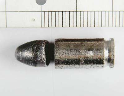 臺北市刑事警察局召開記者會,澄清陳水扁遭槍擊所用的槍支并非媒體所報導(dǎo)的掌心雷,圖為槍傷陳水扁鉛質(zhì)彈頭的子彈,是在陳水扁的夾克發(fā)現(xiàn)。
