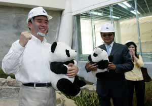 另據報道,臺北市動物園27日以公開4月即將完工的熊貓館,展現爭取熊貓展出企圖心,市長郝龍斌站在熊貓館前宣示:“熊貓預計10月抵臺,檢疫后11月開放展示。”