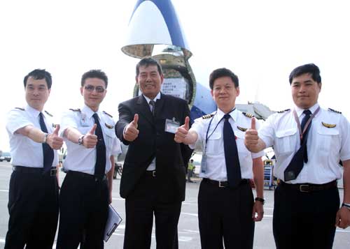 負(fù)責(zé)貨機(jī)的正駕駛王瑋等人對(duì)于擔(dān)任這趟任務(wù)感到相當(dāng)榮耀,也希望能安全、平安,將物品送往災(zāi)區(qū)。