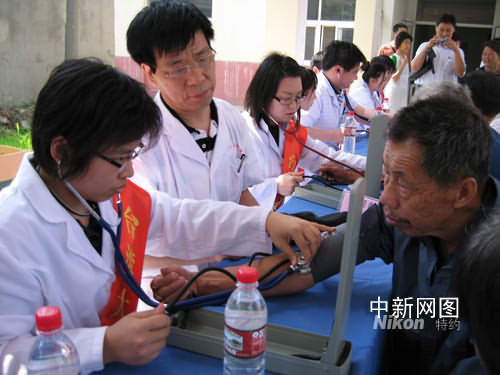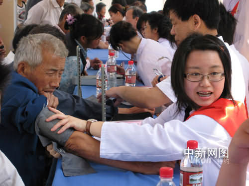 今日在六合區雄州市街道敬老院,長條課桌鋪開一溜,二十多個臺灣大學生著清一色白大褂,神情嚴肅認真、儼然“大夫”模樣。在敬老院七十五個老人面前,他們詢病問傷,量血壓、針灸、開藥方,忙得不亦樂乎。