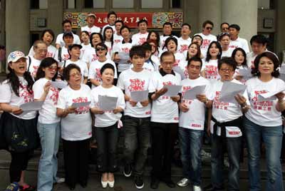 中新網(wǎng)6月4日電 四川強(qiáng)震災(zāi)情慘重,臺灣藝人愛心不落人后,演藝工會理事長康凱今天率數(shù)十位老中青藝人,在臺北“國父紀(jì)念館”拍攝賑災(zāi)歌曲“震不碎的心”MV,包括高凌風(fēng)、白冰冰、楊宗緯等人參與舉,希望未來這張單曲能義賣募款,發(fā)揮拋磚引玉之效。