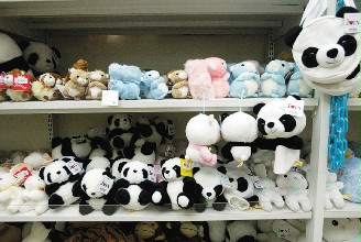 大陸贈臺熊貓團團、圓圓23赴臺,臺北市立動物園的紀念品早就有“團團、圓圓”的蹤影,各式樣熊貓的紀念品被放在明顯的位置,等候民眾購買。圖片來源:臺灣《聯合晚報》